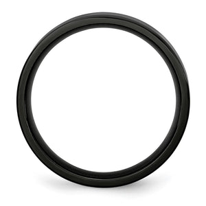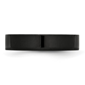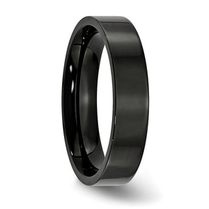 Sleek and simple with a contemporary flat profile designed from black-plated 316L stainless steel with a high polished finish. This 5mm width unisex band has a standard-fit shank and is suitable for engraving.