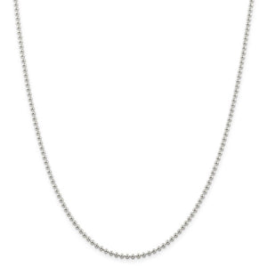 Small round balls gleam along the length of this polished sterling silver chain that measures approximately 2.3mm in width by 24-inches in length. It features a solid link design and closes with a reliable lobster claw clasp.