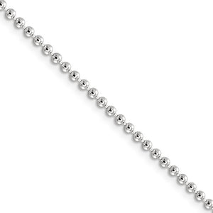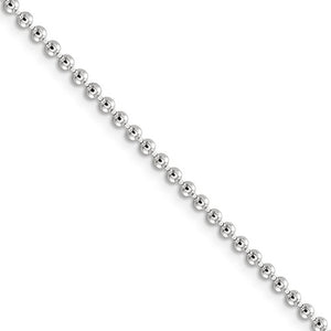 Small round balls gleam along the length of this polished sterling silver chain that measures approximately 2.3mm in width by 30-inches in length. It features a solid link design and closes with a reliable lobster claw clasp.