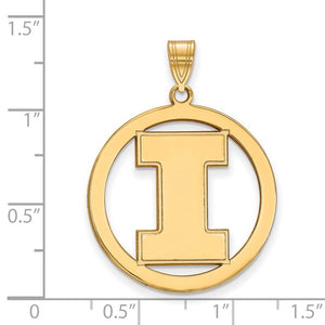 14k Gold Plated Silver U. of Illinois XL Initial I Circle Pendant
