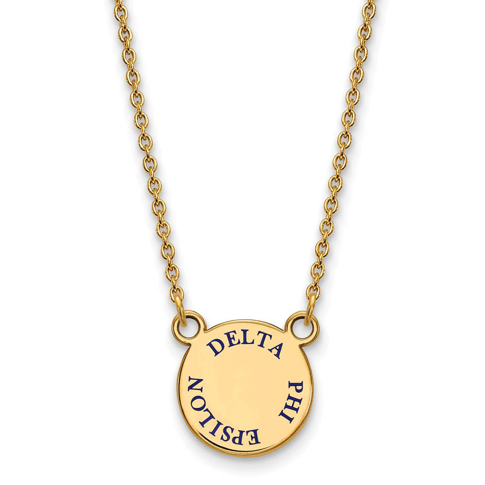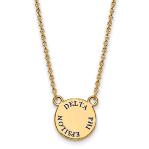 14K Plated Silver Delta Phi Epsilon Small Blue Enamel Necklace - Black Bow Jewelry Company
