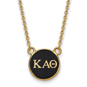 14K Plated Silver Kappa Alpha Theta Small Black Enamel Disc Necklace
