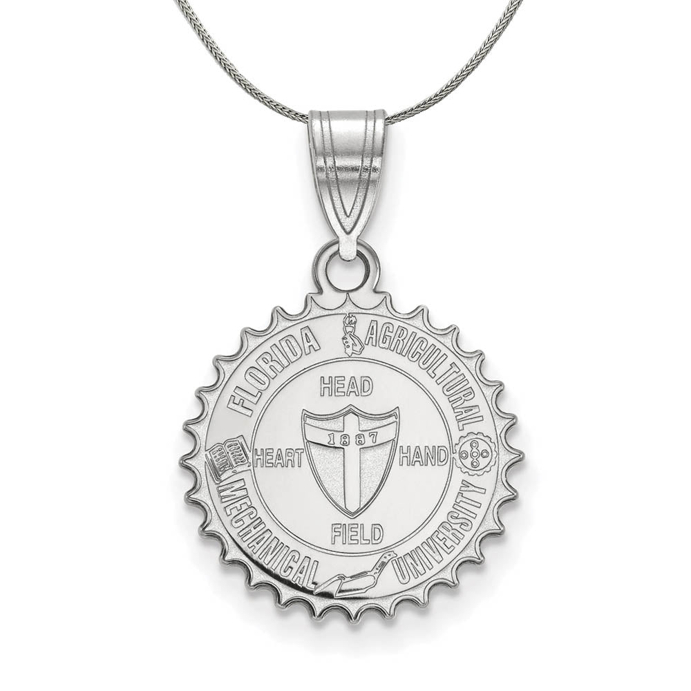 If you are a fan of Florida A&M University and the Rattlers then you need to show your school spirit with this Florida A&M University necklace. We are a certified college jewelry retailer and this authentic item is officially licensed. It is crafted from Sterling Silver and crafted by LogoArt in the USA. Includes a 20 Inch, 1.25mm sterling silver franco chain.
