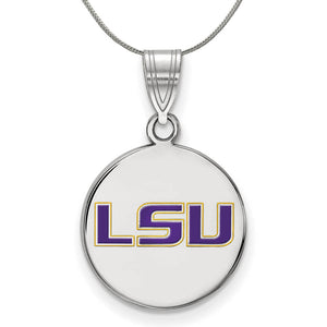 If you are a fan of Louisiana State University and the Fightin Tigers then you need to show your school spirit with this Louisiana State University necklace. We are a certified college jewelry retailer and this authentic item is officially licensed. It is crafted from Sterling Silver and crafted by LogoArt in the USA. Includes a 16 Inch, 1.25mm sterling silver franco chain.