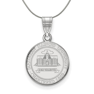 Sterling Silver Southern Illinois U. Medium Crest Necklace - Black Bow Jewelry Company