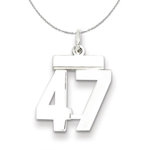 Silver, Athletic Collection, Small Polished Number 47 Necklace - Black Bow Jewelry Company