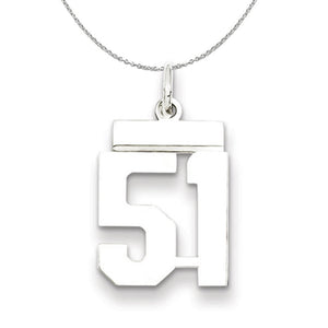 Celebrate your favorite sports player, lucky number or milestone date in your life with a prominent rhodium-plated sterling silver charm. Each polished number is approximately 13mm (1/2 Inch) in length, which is finished with a 2mm top bar and a classic jump ring that will accommodate up to a 3mm chain. Includes a 24 inch, 1.25mm sterling silver cable chain with a lobster clasp closure.