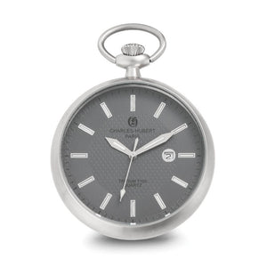 Charles Hubert Stainless Open Grey Face Tritium Quartz Pocket Watch