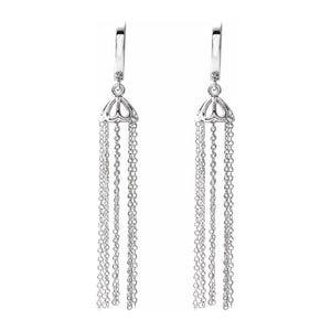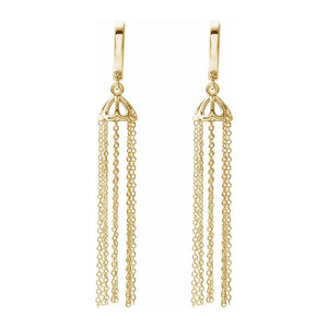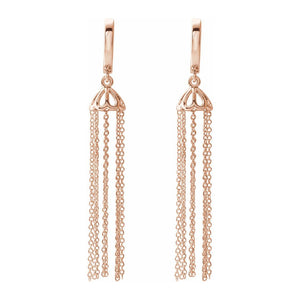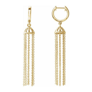 14K Yellow, White or Rose Gold Hinged Hoop Chain Tassel Earrings 53mm