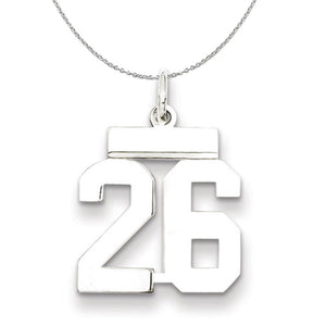 Celebrate your favorite sports player, lucky number or milestone date in your life with a prominent rhodium-plated sterling silver charm. Each polished number is approximately 13mm (1/2 Inch) in length, which is finished with a 2mm top bar and a classic jump ring that will accommodate up to a 3mm chain. Includes a 16 inch, 1.25mm sterling silver chain with a lobster clasp closure.
