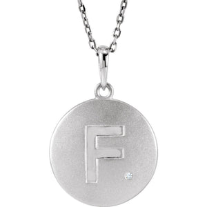 The Emma Sterling Silver Diamond Block Initial F Disc Necklace, 18 In. - Black Bow Jewelry Company