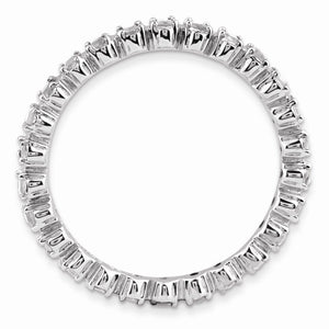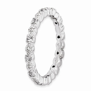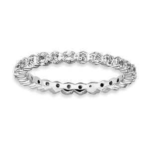 White Topaz, April's birthstone is known as the stone of power, healing and protection; increasing awareness of thoughts and deeds. Diamonds of course are said to be a girl's best friend. This 2.5mm wide band fashioned from rhodium plated sterling silver is prong set with alternating genuine gemstones all the way around. Guaranteed to fit together perfectly with all of the mix and match Stackable Expressions rings.