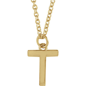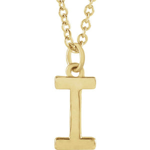 14k Yellow Gold 9.5mm Small Block Initial A-Z Necklace, 18 Inch