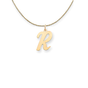 Indulge in a traditional initial charm that subtly enhances and personalizes your jewelry. Each classic script letter is approximately 16mm (5/8 inch) in length, fashioned from 14k yellow gold with a high polished finish and includes a standard jump ring. Includes a 20 inch long, 0.9mm wide, solid 14k yellow gold cable chain with a spring ring clasp.