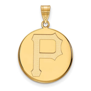 It is time to celebrate your favorite Major League Baseball (MLB) team, the Pittsburgh Pirates! We are a certified retailer, and this authentic unisex large laser-etched pendant is officially licensed. It is created from solid 10k yellow gold and approximately 21mm in width (about the size of a nickel). Chain not included. Made in the U.S.A. This item is not currently in-stock. Once you place your order, please allow us 5 to 7 business days to make it for you.