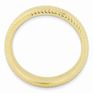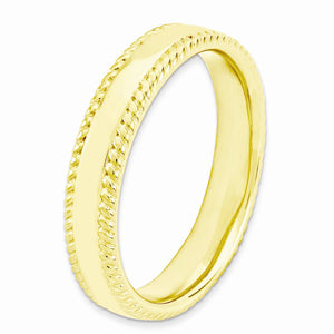 Make it simple and stylish with bands of different textures, finished, widths and colors! This 14k gold plated sterling silver band features rope designed edges with a high polished finish that measures 4.5mm wide. Guaranteed to fit together perfectly with all of the mix and match Stackable Expressions rings.