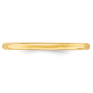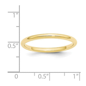 A traditional band created from 10k yellow gold featuring a classic dome design with a polished finish and a comfort fit shank. It is approximately 1.95mm in thickness (standard weight) and 2mm in width.