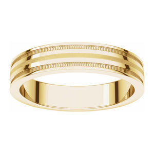 4mm 14K Yellow Gold Flat Edge Satin Center Milgrain Comfort Fit Band