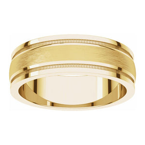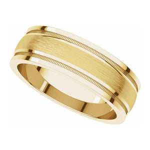 6mm 14K Yellow Gold Flat Edge Satin Center Milgrain Comfort Fit Band
