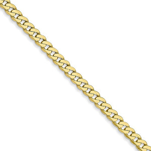 Flat curb links of 10k gold enhanced with beveled edges form an attractive necklace that looks great alone, layered with multiple chains or paired with a gold charm or pendant to complete your desired style. This one measures 2.4mm in width by 24-inches in length and closes with a lobster-claw clasp to keep it safely in place.