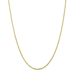 Spiraling rope chains made of 10k yellow gold enhanced with diamond-cuts are extremely popular because they offer a classic design with maximum shine. Flexible and strong, this extra lightweight, solid link chain measures 2mm in width, 18 inches in length and fastens with a sturdy lobster-claw clasp.