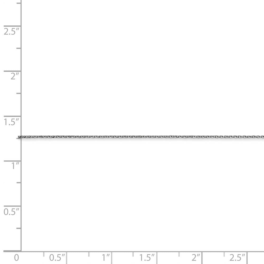 This thin delicate rhodium-plated 10k white gold cable chain features oval links with a polished, diamond-cut finish that promises long-lasting beauty. It measures 0.6mm in width by 18-inches in length and comes ready to wear with a spring-ring clasp.