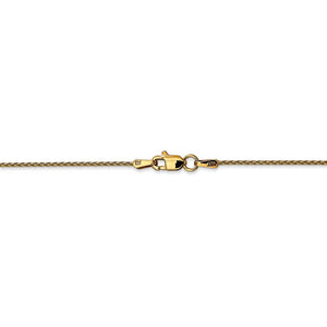 This beautiful chain intricately woven from 14k yellow gold features a solid link, Parisian wheat pattern with a smooth polished finish. Crafted in the USA, this 1.2mm width chain comes complete with a lobster-claw clasp for a reliable fit. 14 inches in length.