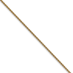 This beautiful chain intricately woven from 14k yellow gold features a solid link, Parisian wheat pattern with a smooth polished finish. Crafted in the USA, this 1.2mm width chain comes complete with a lobster-claw clasp for a reliable fit. 18 inches in length.