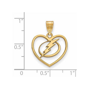 SS 14k Yellow Gold Plated NHL Tampa Bay Lightning Heart Pendant - Black Bow Jewelry Company
