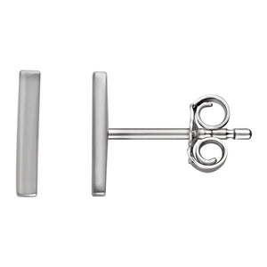 Change up your look with these eye-catching 14k white gold stud earrings featuring a polished vertical bar design that is approximately 1.8mm in width by 8.7mm (3/8 inch) in length. They are flat on the back and affixed to a friction back post.