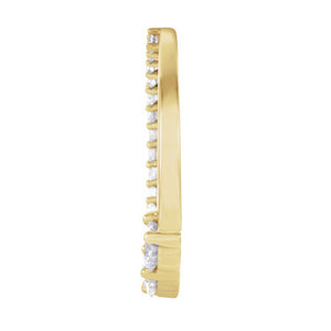 Journey diamond jewelry has special meaning - with every step, love grows. Specially designed with each diamond growing larger to signify your love growing and blossoming with time. Celebrate the journey with our graduated 20-stone diamond circle pendant created in 14k yellow gold featuring a no bail design that can be hung from a cord or chain or your choice using a cow-hitch assembly. The natural diamonds are I1 in clarity and G-H in color and the total diamond weight is 1/5 of a carat. It is approximately 15mm or 9/16 inch in size. Chain not included. This is a made to order item and is estimated to ship in about 10 days. Please email service@theblackbow.com for more details.