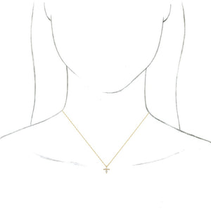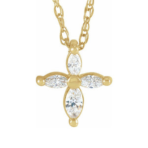 14K Yellow Gold 1/6 CTW Diamond Marquise Tiny Cross Necklace, 18 Inch