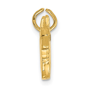 This beautiful little Scottish Terrier features a three-dimensional textured design made from 14k yellow gold and 1.3mm genuine rubies. It measures approximately 15mm (9/16 inch) in width by 15mm (9/16 inch) in length. Made in the U.S.A. Chain not included.