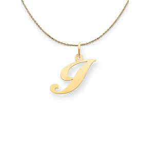 14k Yellow Gold LG Fancy Script Initial I Necklace - Black Bow Jewelry Company