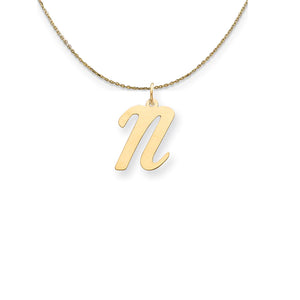 Indulge in a traditional initial charm that subtly enhances and personalizes your jewelry. Each classic script letter is approximately 16mm (5/8 inch) in length, fashioned from 14k yellow gold with a high polished finish and includes a standard jump ring. Includes a 20 inch long, 0.9mm wide, solid 14k yellow gold cable chain with a spring ring clasp.