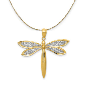 14k Yellow Gold & Rhodium 30mm Filigree Dragonfly Necklace