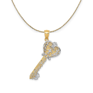14k Yellow Gold & Rhodium Plated I love You Key Necklace