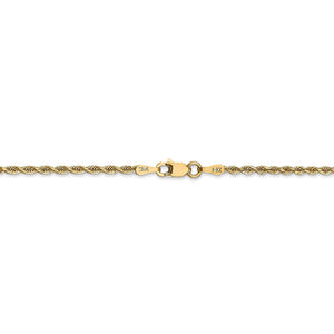 The radiant luster of 14k yellow gold combined with a diamond-cut finish gives this versatile, spiral rope chain plenty of sparkle. The flexible, solid link design makes it perfect for those looking for a multi-talented accessory. This amazing quadruple rope measures 2mm in width and closes with a secure, lobster clasp. 9 inches in length.