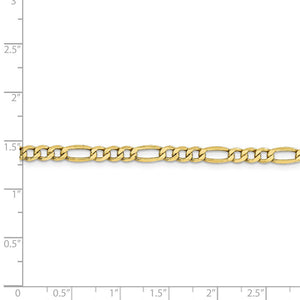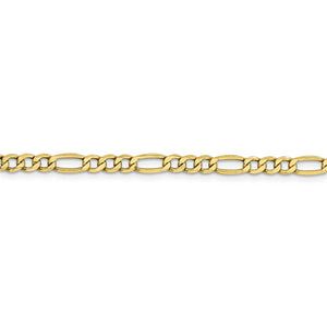Known for its reoccurring three and one pattern, this stylish figaro chain with its hollow link construction of 10k yellow gold features a bright, polished finish that adds lustrous appeal. It measures 4.5mm wide and fastens with a secure lobster-claw clasp. 8 inches in length.
