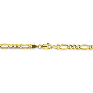 Known for its reoccurring three and one pattern, this stylish figaro chain with its hollow link construction of 10k yellow gold features a bright, polished finish that adds lustrous appeal. It measures 4.5mm wide and fastens with a secure lobster-claw clasp. 7 inches in length.