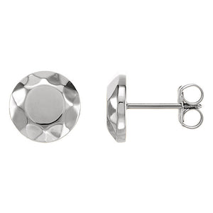 9mm (3/8 Inch) 14k White Gold Faceted Circle Stud Earrings