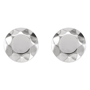 9mm (3/8 Inch) 14k White Gold Faceted Circle Stud Earrings - Black Bow Jewelry Company