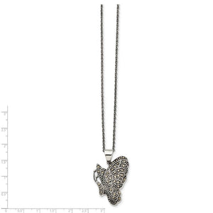Marcasite Butterfly Necklace in Antiqued Stainless Steel, 20 Inch