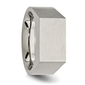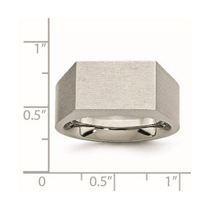 Traditional signet rings are stylish and timeless! This men's titanium ring features a brushed flat top, polished interior and a tapered fit. It is approximately 10mm in width across the top and tapered to 6mm width at the bottom. Available in whole sizes only 9 to 12. Suitable for engraving.