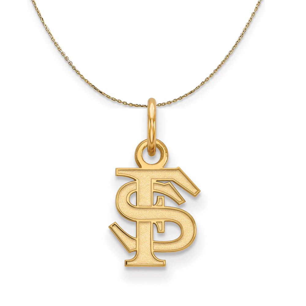 • If you are a fan of Florida State University and the footbal team then you need to show your school spirit with this Florida State University pendant. We are a certified college jewelry retailer and this authentic item is officially licensed. It is crafted from 14k Yellow Gold and crafted by LogoArt in the USA. Includes a 30 Inch, 0.8mm 14k yellow gold cable chain with a lobster clasp.