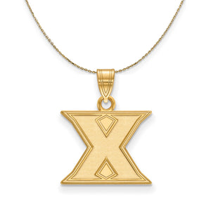 If you are a fan of Xavier University and the Musketeers then you need to show your school spirit with this Xavier University pendant. We are a certified college jewelry retailer and this authentic item is officially licensed. It is crafted from 14k Yellow Gold and crafted by LogoArt in the USA. Includes a 30 Inch, 0.8mm 14k yellow gold cable chain with a lobster clasp.