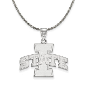 • If you are a fan of Iowa State University and the Cyclones then you need to show your school spirit with this Iowa State University pendant. We are a certified college jewelry retailer and this authentic item is officially licensed. It is crafted from Sterling Silver and crafted by LogoArt in the USA. Includes a flexible and strong diamond cut rope chain. This stunning chain is 2.25mm in width, 20 inches in length and features a sturdy lobster claw clasp. The chain is crafted in Italy.