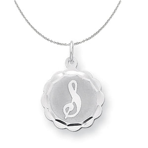 Silver, Sarah Collection 15mm Brocaded Disc Initial S Necklace - Black Bow Jewelry Company