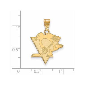 It is time to celebrate your favorite team, the Pittsburgh Penguins! This NHL pendant created from 14k gold-plated sterling silver is officially licensed by the Pittsburgh Penguins and crafted in the USA. The approximate size is 19mm (3/4 inch) in width by 26mm (1 inch) in length with the bail. This item does not include a chain. This item is not currently in-stock. Once you place your order, please allow us 5 to 7 business days to make it for you.