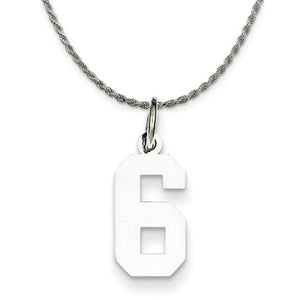 Celebrate your favorite sports player, lucky number or milestone date in your life with a prominent rhodium-plated sterling silver charm. This laser cut polished number is approximately 18mm (11/16 inch) in length and is finished with a classic jump ring. Includes a flexible and strong diamond cut rope chain. This stunning chain is 2.25mm in width, 20 inches in length and features a sturdy lobster claw clasp. The chain is crafted in Italy.